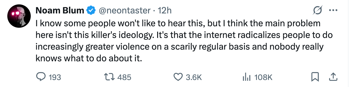 The radicalization of Tyler Robinson, the young man from an apparently untroubled household who murdered Charlie Kirk, has spawned debate on everything from gun violence to the role of Antifa in stoking our national divisions. But when all is said and done, the primary take-away from Tyler Robinson’s radicalization may be the danger of unrestricted internet access. From Rod Dreher earlier today: